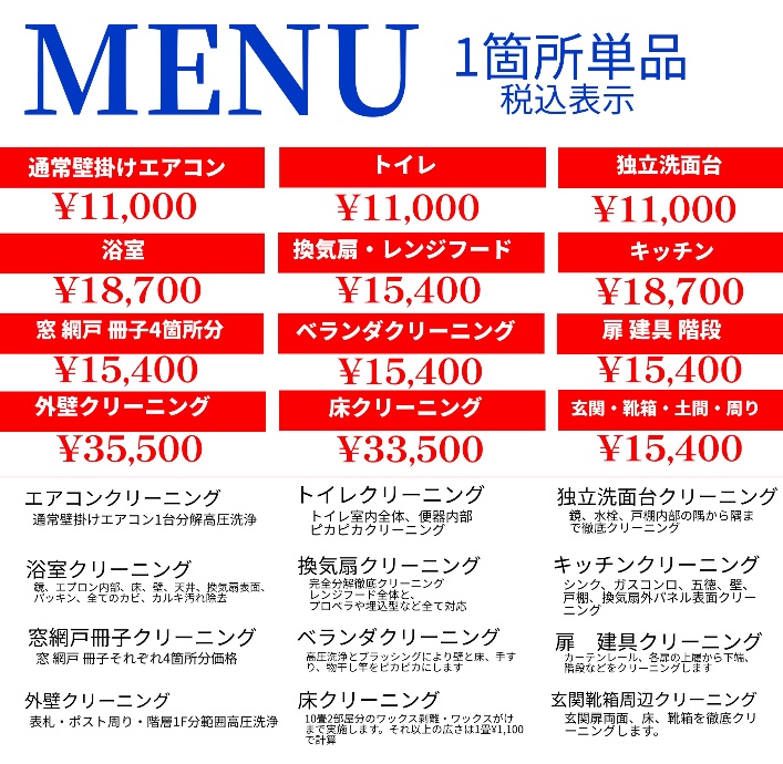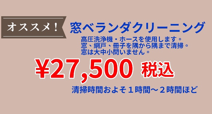 窓、網戸、冊子、隅から隅までキレイに高圧洗浄しませんか?大窓4箇所分の税込¥15,400です。ピカピカの窓で心もリフレッシュ!