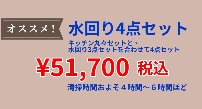 油汚れ、白いカルキまみれの蛇口やシンク、焦げついたコンロ、壁や天井、換気扇フタなど全体クリーニングはいかがですか?